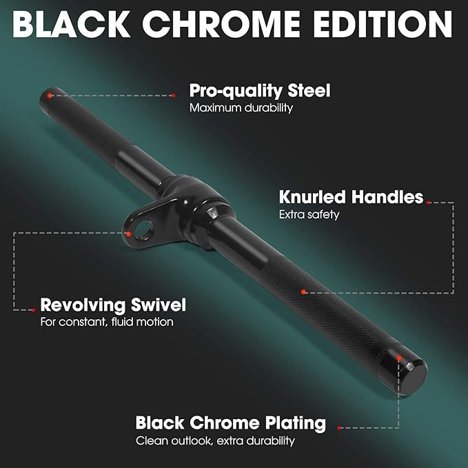- MULTI-WORKOUTS: Ideal for developing your triceps, biceps, back, shoulders, and improving grip strength, this straight bar can revolutionize your workout routine on any cable machine