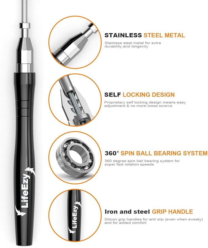 - Faster and Smoother - Premium grade 360-degree ball bearings? You are right. Our newest speed jump rope built-in with high DOUBLE-BEARING SYSTEM, it ensures stable and fast rotation, tangle-free, which brings you smooth jump exercises.