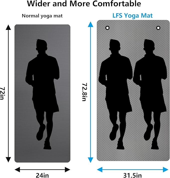 LFS Yoga Mat 72.8" x 31.5" x 2/5 inch Thick With Strap and Bag, Extra Wide Workout Mat for Women and Men, Non Slip Exercise Mat for Home Outdoor Yoga, Pilates, Stretching, Floor & Fitness Workouts