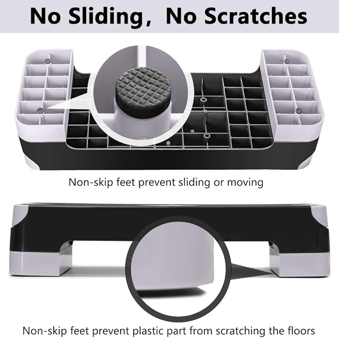 - Two Adjustable Hight: Comes with 26.5" x 10.5" wide platform and a set of risers. With 2 adjustable height (4 inches - 6 inches), perfect for any levels of user. You can adjust the height according to your preference and achieve your exercise intensity.