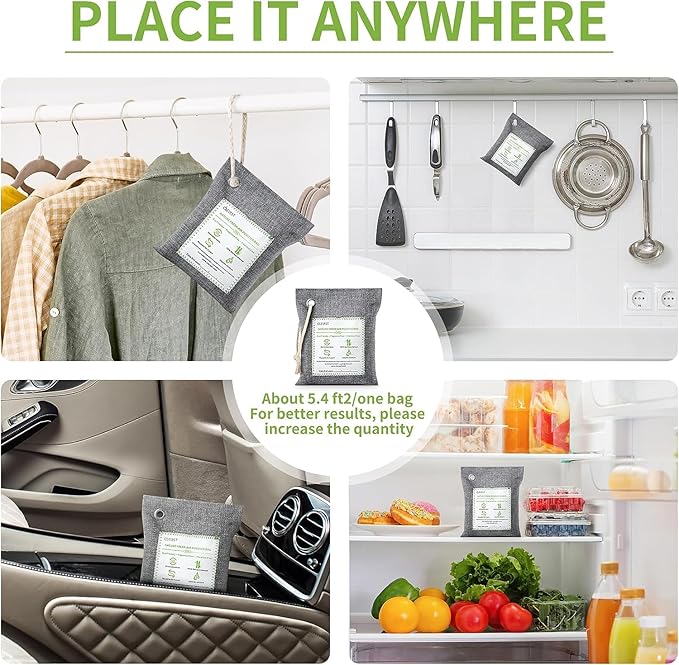 - EFFECTIVELY REMOVES ODORS: Bamboo charcoal absorbs 10x the odor of regular charcoal bags; eliminating musty odors with ease, quickly transforming your home air quality! We recommend placing multiple air purifier bags to specific areas around the house to maximize the air purification effect.