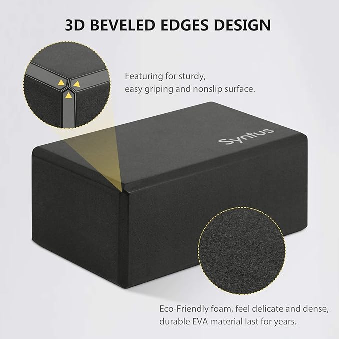 Syntus Yoga Block and Yoga Strap Set, 2 Soft Non-Slip Yoga Blocks 9×6×4 inches, 8FT Metal D-Ring Strap for Yoga, General Fitness, Pilates, Stretching and Toning