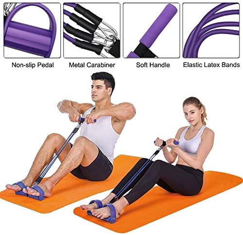 Pedal Resistance Band, 4-Tube Elastic Pull Rope, Sit-up Equipment, Yoga Strap Bodybuilding Expander, Exercise Bands, Fitness Equipment for Abdomen, Waist, Arm, Leg Stretching Slimming Training