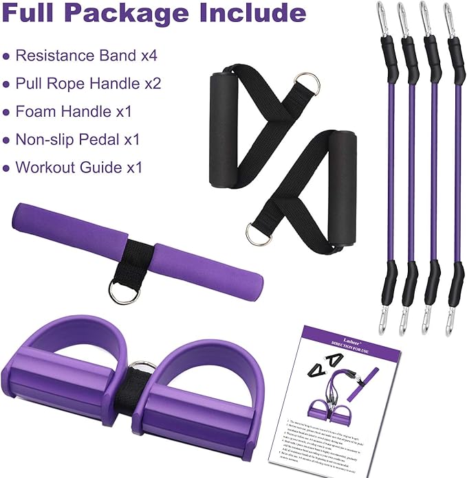 - 【MULTIFUNCTION & REMOVABLE】Each part of this foot pedal resistance bands with handles is removable. This is a helpful addition for home workout gear. The fitness equipment can be used for any type of stretching slimming training, effectively help to reduce the excess fat in the legs, abdomen, waist and arms, a portable abs workout equipment to lose your belly fat and shape you a perfect body.