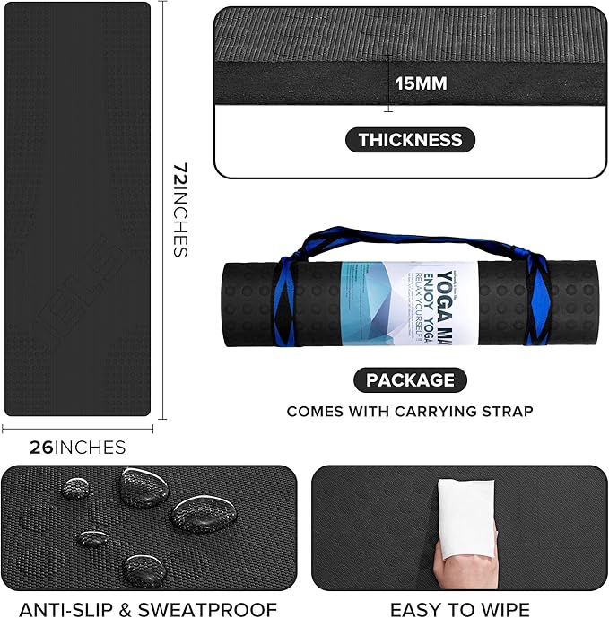 - 💪【EXTRA LARGE WORKOUT MAT】The extra-large size(6'*2'*10mm) tailored specifically for Americans, you don’t have to worry about certain actions being placed outside the mat.Our mats come with a free carry strap,you can carry to the gym or anywhere you want.