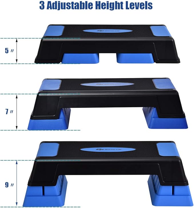 - 【Adjustable Heights for Different Needs】According to your individual preference, you can adjust this step platform freely in 3 levels (5 inches, 7 inches, 9 inches). You will have a scientific fitness program to gradually increase the intensity and calorie burn rate, which will build muscle strength and improve cardiovascular health.