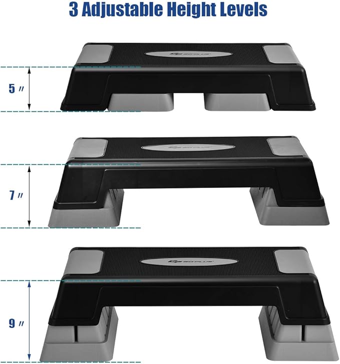 - 【Adjustable Heights for Different Needs】According to your individual preference, you can adjust this step platform freely in 3 levels (5 inches, 7 inches, 9 inches). You will have a scientific fitness program to gradually increase the intensity and calorie burn rate, which will build muscle strength and improve cardiovascular health.