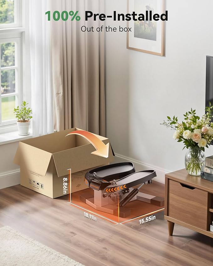 - [100% assembled] Sportsroyals twist stepper is ready to use out of the box, no extra installation, very suitable for home gym. Size:18.11"L*15.55"W*8.86"H.The portable stair stepper can easily store it in the corner when you finish your workout.