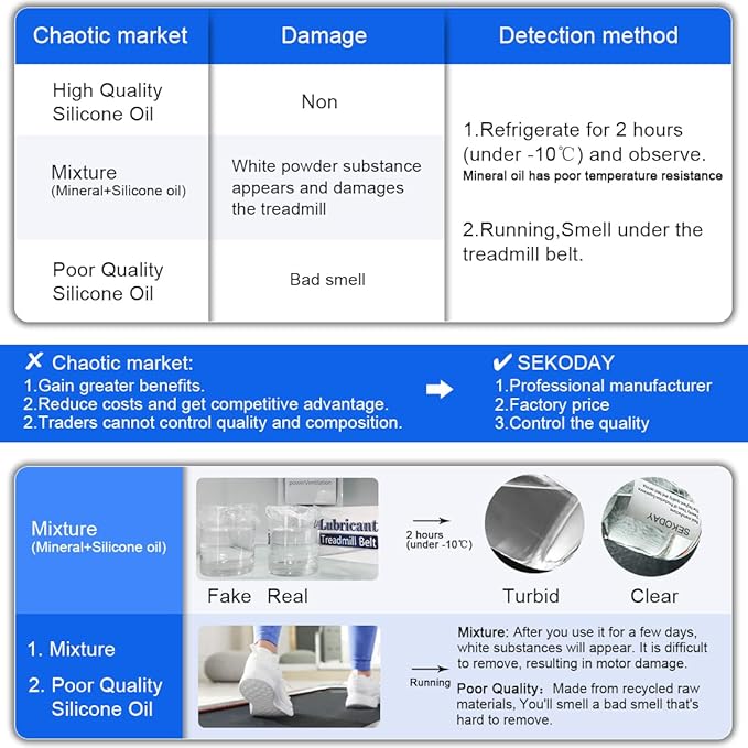 - Scope of application: applicable to equipments that need non petroleum silicone based fabrics. Specially customized silicone oil has strong compatibility. Suitable for most branded treadmills in the market.