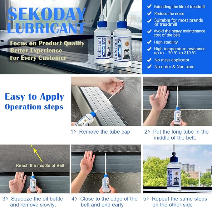 - Product features: colorless transparent silicon lubricant (non-toxic and colorless, high temperature resistance up to - 158 ° F - 590 ° F, high stability, high lubricity) It’s widely formulated for modern treadmills. Suitable for household and heavy commercial treadmills, most elliptical equipment and other sports equipment.