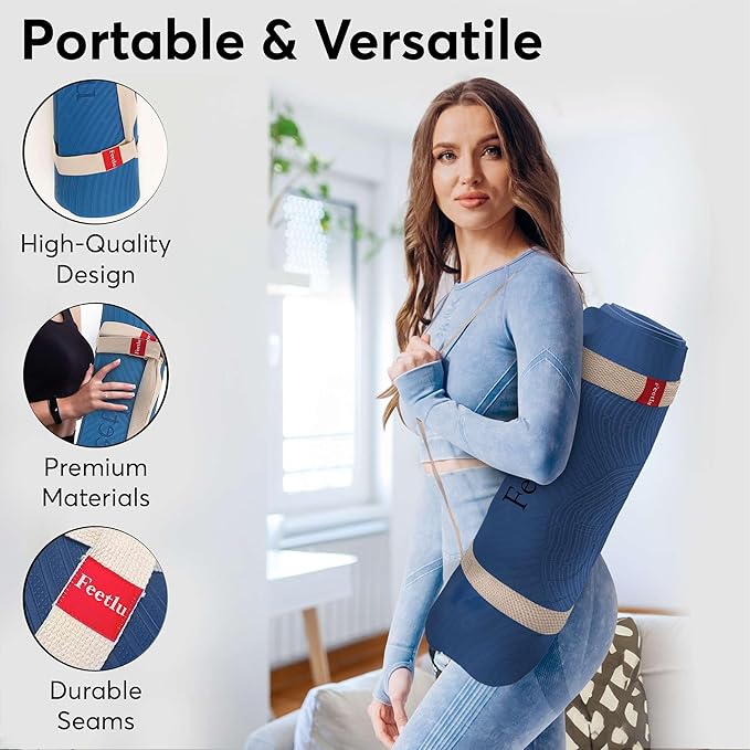- [Large Size & Easy Transport] Generously sized at 74" x 26", it offers ample room to move freely. Weighing 4.4 lbs, it comes with a classic Feetlu yoga strap for easy carrying.