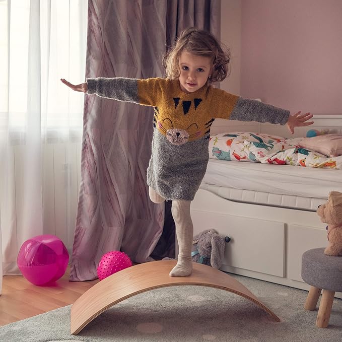 - πͺ SUPERIOR & HIGH QUALITY - The balance board is sized at 35" x 11.8" x 0.7" and made entirely out of NATURAL WOOD giving it increased resistance and holding up to 488 lbs, so hop on the board together with your little one, there's room for both - NON-TOXIC COATING ensures the wood stays well protected as well as your and your children's health - professional craftsmanship not only gives this unique toy a very desirable look but also ensures ALL EDGES ARE CHILD SAFE and free of splinters;