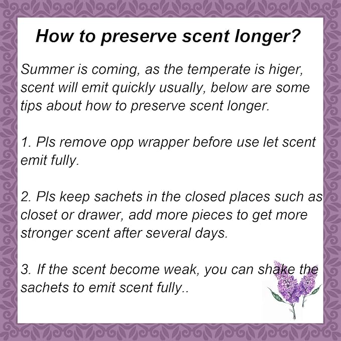 - Enjoy Life with Sweet Aroma: It is better to put our scented sachet packets in closet places in order to preserve scent longer. So just place these closet sachets to closet, drawer, cars, suitcase and handbags to let your life be filled with perfect sweet fragrance, always keep a good mood.sachet bags scented can be used for aroma therapy to nourish and stimulate the body and soul, let you feel calming and relaxing.