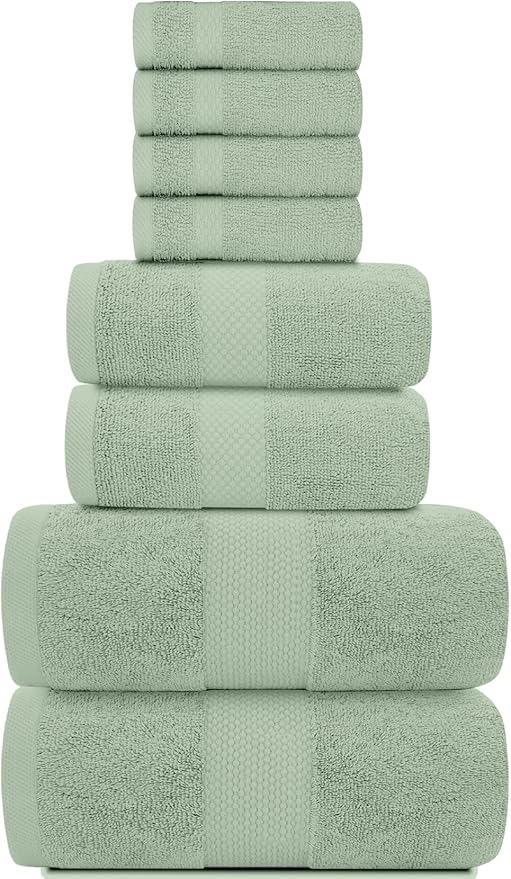 White Classic Luxury Bath Towel Set of 8 Pieces - 100% Turkish Cotton Highly Absorbent Towels for Bathroom, 2 Luxury Bath Towels 700GSM, 2 Hand Towels, 4 Washcloths, Green