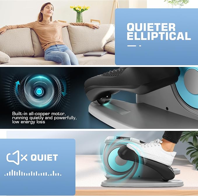 - Mini and Compact, Easy to Use: You don't need to assemble, you can use it directly. The compact and portable design makes it easy to move this under desk elliptical around your home. It does not make unpleasant noise, you can use it quietly at home and in the office.