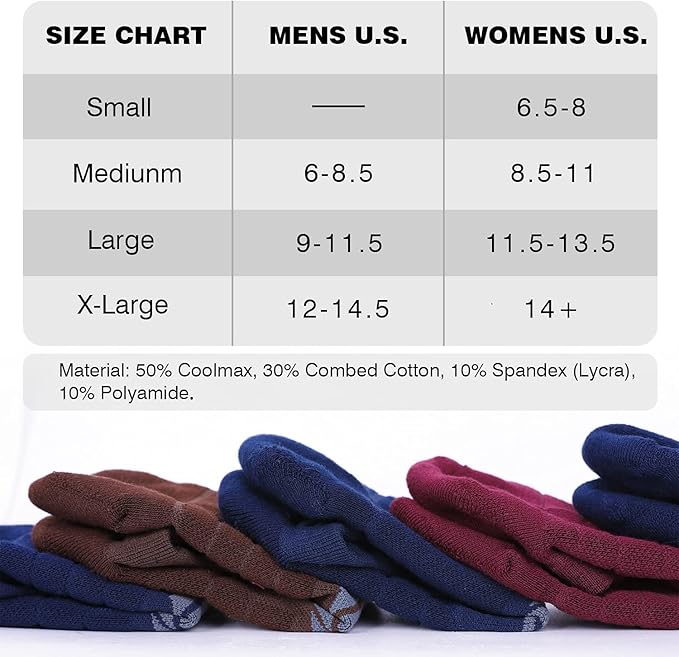 - Anti odor and Moisture Wicking Socks: Made from high-end moisture control and quick dry CoolMax fiber, Our workout socks move perspiration away effectively from skin surface so as to keep feet fresh and dry. Nice anti-Odor and anti-blister short socks help you avoid embarrassment