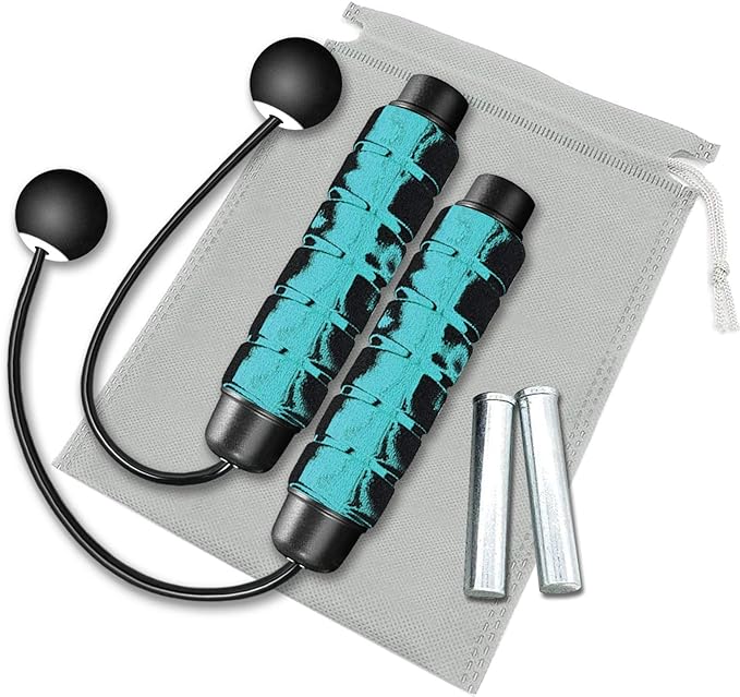 - Weighted and comfortable handles - you can add weight-bearing iron blocks to your needs, each weighing 80g, which make the whole jump ropes weigh 0.7 pounds. Will let your entire jumping rope process under the load, consumes more energy. The handle is soft and comfortable PP+EVA foam material,made of toner extrusion technology, which is an improvised graffiti. It absorbs sweat and has certain friction force. When you jump quickly, it can adhere to your hand very well.