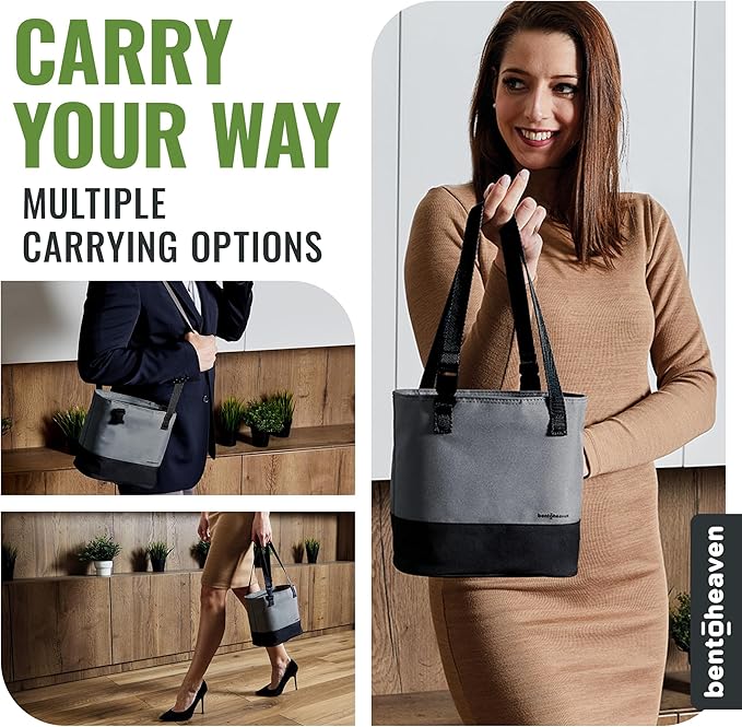 Bentoheaven Insulated Lunch Tote for Work - Durable Materials, Variable Strap/Handle, Wide Opening - Cooler Lunch Bag for Women & Men - Fits all major Bento Lunch Boxes and Other Containers (Gray)