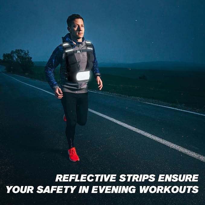 - 【Reflective Strips & Edge Protector】 The reflective strips make you visible even in low-light conditions, thus ensuring your safety in the case of evening workouts. A double-stitching edge protector is designed to hold sand inside without leakage, increasing the service life of vests.