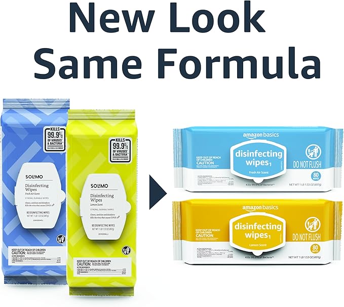 Amazon Basics Disinfecting Wipes, Lemon & Fresh Air Scent, Sanitizes/Cleans/Disinfects/Deodorizes, 320 Count (4 Packs of 80)