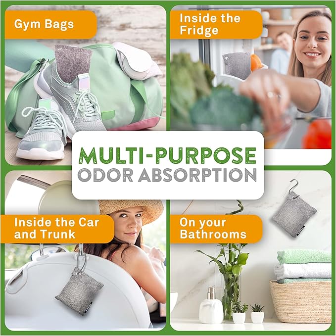 - 🚫 Remove Bad Odors - Freshen up your car, home or even shoes with our charcoal odor absorber. This bamboo charcoal air purifying bag act as a natural odor eliminator to remove unwanted smells. Think of your activated bamboo charcoal bags like sponges that absorb odor and freshen the air.