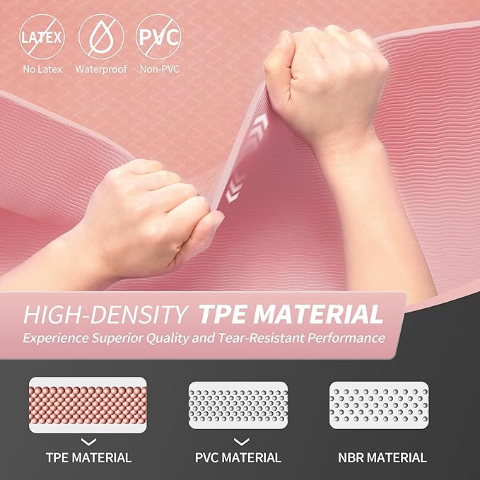 - Comfort and Cushioning: high-density and soft TPE material boosts sufficient cushioning and shock-absorbing features; this yoga mat will effectively protect your body from discomfort and reduce your joint pressure; offer a solid and stable base for an unparalleled workout experience