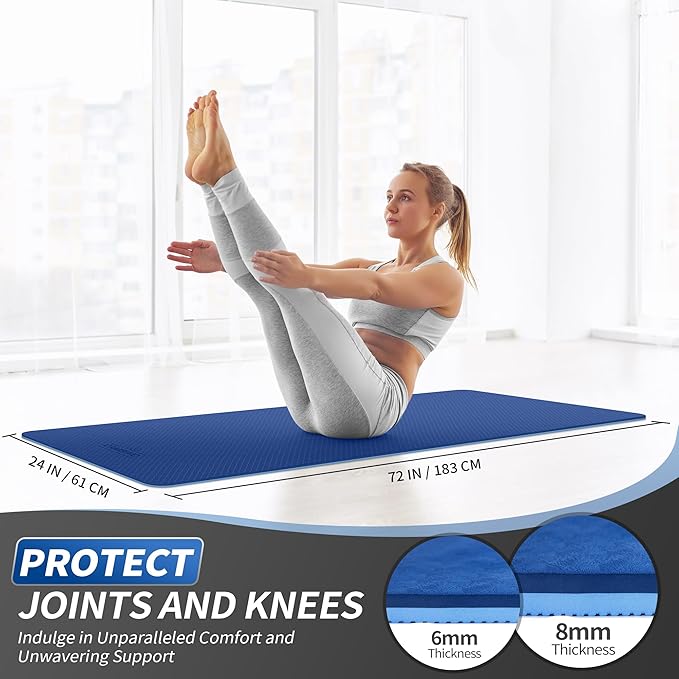 - 8mm & 6mm Thick Options: 2 thickness available; 8mm is more suitable for yoga beginners and provides excellent protection for your spines, hips, elbows, and knees, especially in the forearm and kneeling poses; 6mm is better for experienced yogis and offers you better balance and groundedness to do more advanced yoga poses