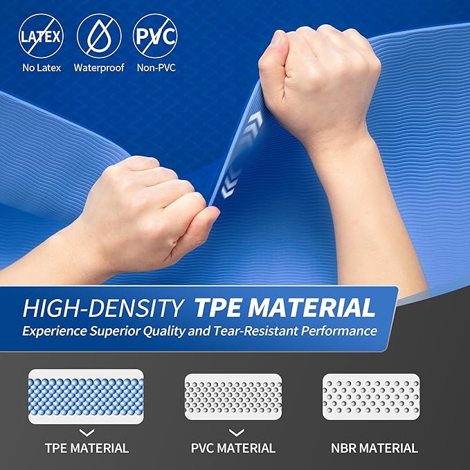 - Durable TPE Material: No PVC and latex; no worries about exposure to harmful odor when using the mat; can be used as play mats for kids to spend a lot of time; the durable TPE mat can service you for quite a long time