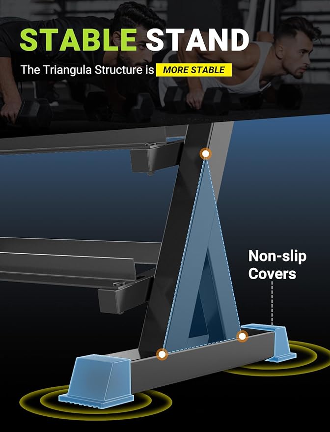 - Double Security for Stability: Specially designed with four rubber end caps to protect your floor from scratches, absorb shock, and prevent the rack from sliding around. The YOLEO dumbbell holder rack features a durable powder coating that won't be tarnished by even the heaviest hits