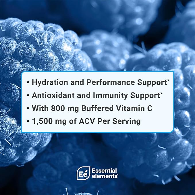 Essential Elements Hydration Packets - Blue Raspberry Pack - Sugar Free Electrolytes Powder Packets - 25 Stick Packs of Electrolytes Powder No Sugar - Hydration Drink - with ACV & Vitamin C