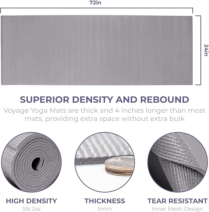 Sunshine Yoga Voyage Yoga Mat, 6 Pack, 72" x 24" Professional Studio and Gym Bulk Yoga Mats, 5mm Thick, Durable, Anti-Tear, Non Slip Fitness and Exercise Mats