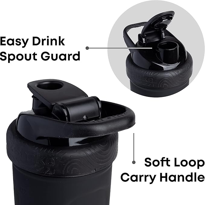 - DURABLE AND ROBUST. This large 900 ml shaker features a soft silicone base, a screw-on leak-proof lid, a soft loop handle and a smooth, matte gray powder-coated finish for a non-slip grip