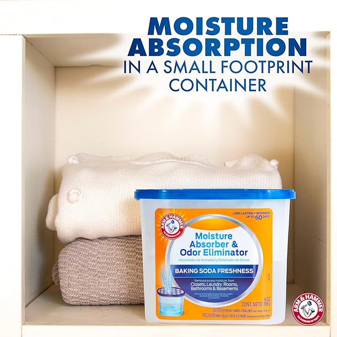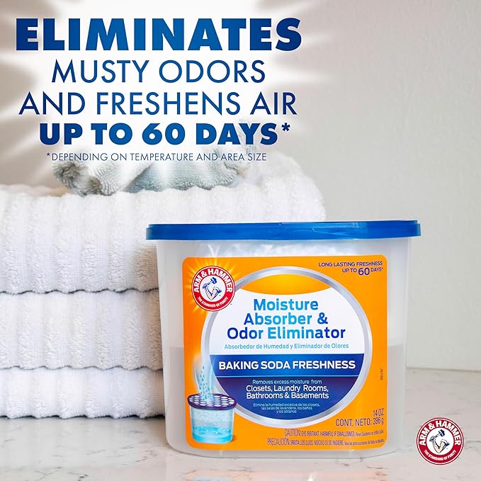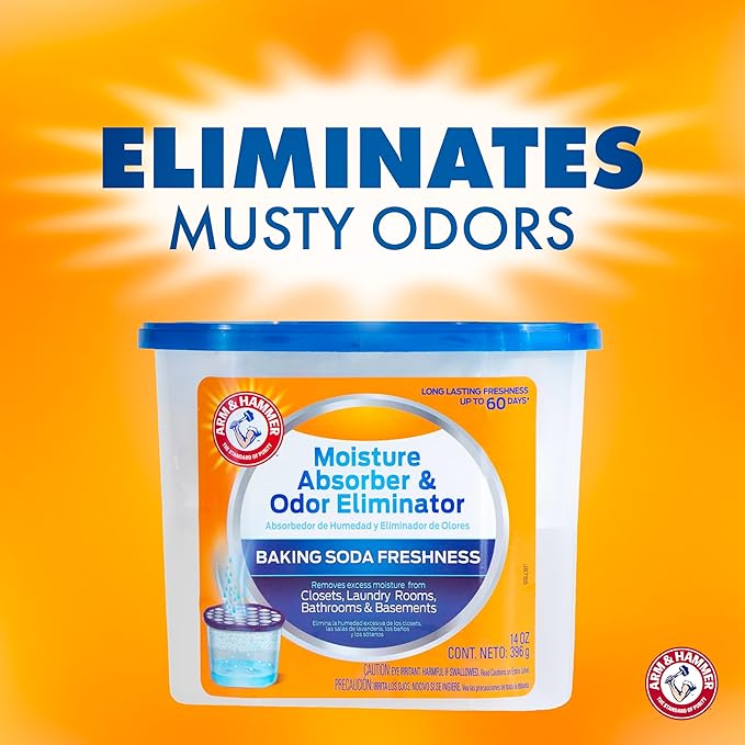 - Arm & Hammer Refillable Moisture Absorber and Odor Eliminator attracts and traps excess moisture, eliminating musty odors.
