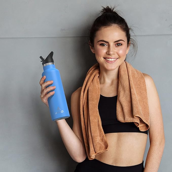 Stainless Steel Double Wall Water Bottles, Vacuum Insulated Bottle With Straw Lid, Insulated Water Bottle Keeps Water Cold for 24 Hours, Hot for 12 Hours, Hiking, Sports