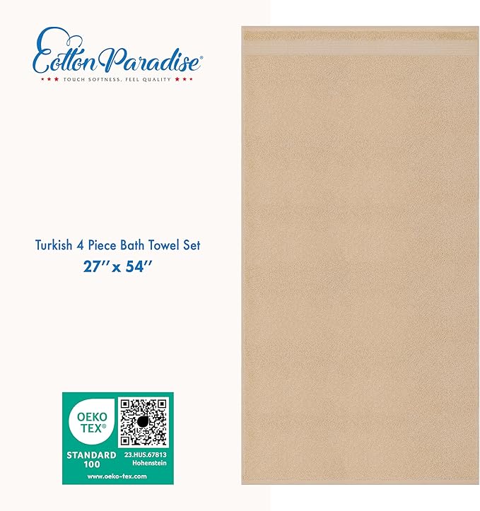 Cotton Paradise 4 Piece Turkish Bath Towels for Bathroom, Extra Large Soft Plush Towels Bathroom Set, Beige