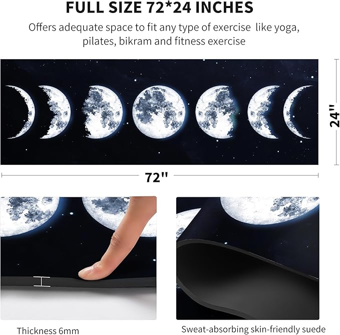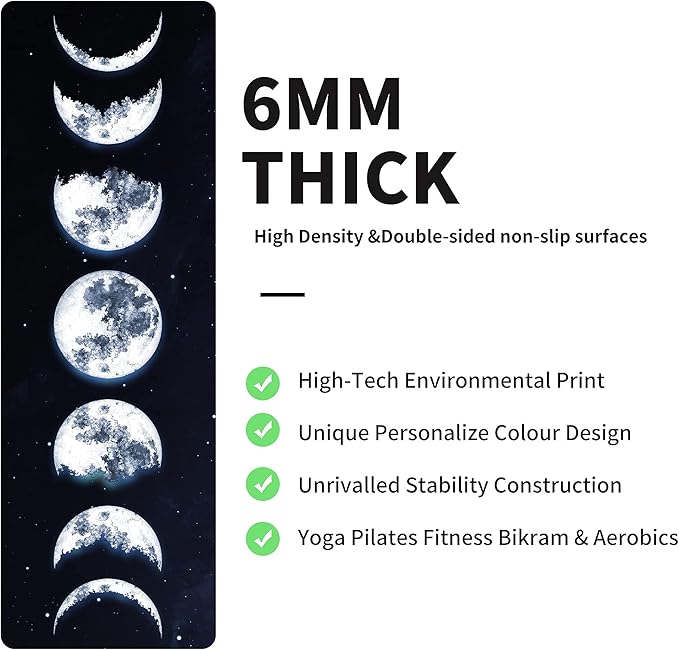 - ▨ EXTRA THICK LONG AND WIDE:72"x 24" offers adequate space to fit any type of exercise like yoga, pilates, fitness exercise and so on. nuveti's exercise mat is is more safer and comfortable. It is perfect for practicing balance postures, Especially the 6mm extra thick is high density, Provides excellent cushioning and resilience, All our mats come with a free bag for easy transport from home to yoga class.