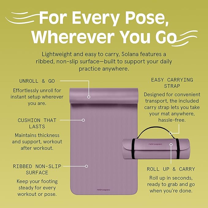Retrospec Solana Yoga Mat 1/2" Thick w/Nylon Strap for Men & Women - Non Slip Exercise Mat for Yoga, Pilates, Stretching, Floor & Fitness Workouts