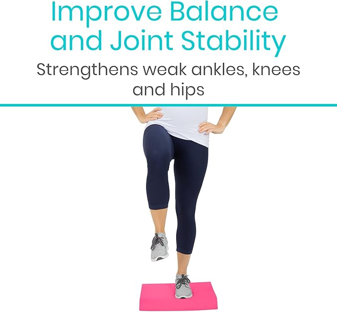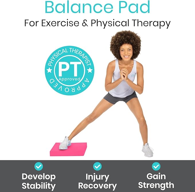 - IMPROVE STRENGTH, BALANCE AND MOBILITY: Easily integrating into any workout routine, physical therapy or rehabilitation program, the Vive balance pad provides a safe, destabilized surface to improve overall balance and increase core strength. Perfect for seniors and those recovering from injury or surgery, the durable foam balance pad increases joint stability and motor skills, safely strengthening weak ankles, knees and hips.
