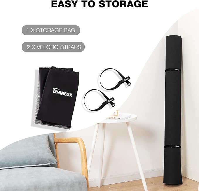 - EASY TO STORAGE - This spacious yoga mat can be placed in any corner of your room with the included 2 Velcro Straps and a Storage Bag. (If your mat damaged or accessories missing, please contact us immediately, we will give you a satisfactory answer)