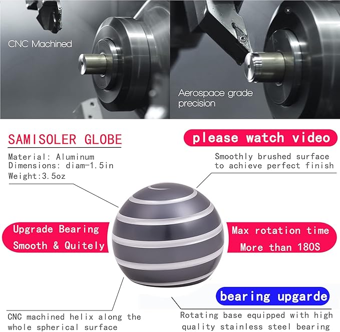 • High-quality: 1.5" Size, Aluminum metal and machined by CNC,With high-quality bearing for spinning 180 Seconds.