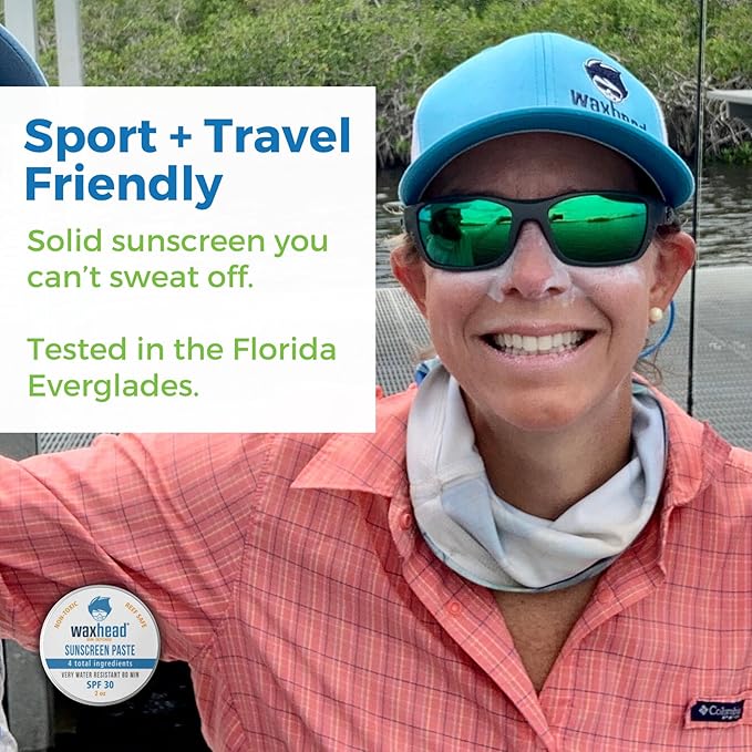 Waxhead Zinc Oxide Sunscreen Face & Nose - Sensitive Skin Safe SPF 30, Reef Safe Physical Visible Protection for Acne Prone Skin, Waterproof Natural Mineral Sunscreen for Kids & Adults (White 2oz)