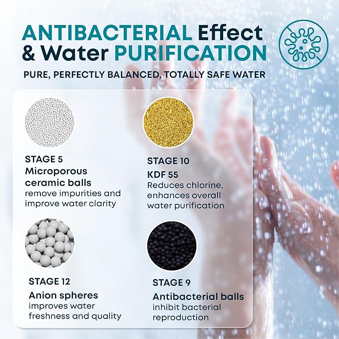 - HEALTH CARE SHOWER SYSTEM: Our cartridge has 20 stages of filtration that effectively reduce chlorine, heavy metals, fluoride, lime and scale in water.
