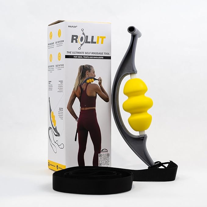 Rolflex Rollit | The Ultimate Shoulder and Trap Masage Tool for Self Myofascial Release, Trigger Point and Self-Massage for Your Neck, Back & Whole Body - (Yellow, Firmer Roller)