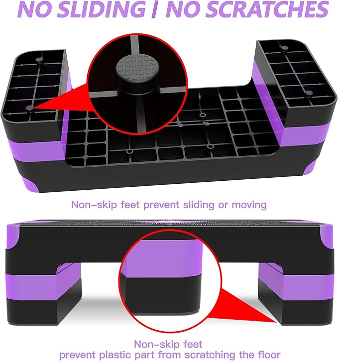 - ANTI-SLIP & NO SCRATCHES: The circular grooves and non-slip textured top of GYMMAGE Workout Stepper provide more grip and traction for exercise, prevent you from slipping/sliding. And leave you feeling safe and your movements worry free. The 4 non-slip rubber feet provide stable performance and leave no scratches