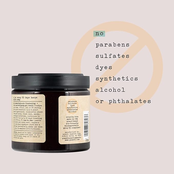 - MADE IN THE USA - Air Essentials Gel Beads do not contain parabens, sulfates, dyes, synthetics, alcohol or phthalates. Every jar is proudly Made in the USA and is formulated with plant derived ingredients.