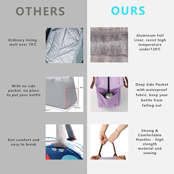 - ❤BUY WITH CONFIDENCE: If you are not satisfied with our lunch bag, we will offer you 30 days refund or replacement. If any problem, please contact us via email, we will reply you within 24 hours during working day. So buy it without any hesitation.