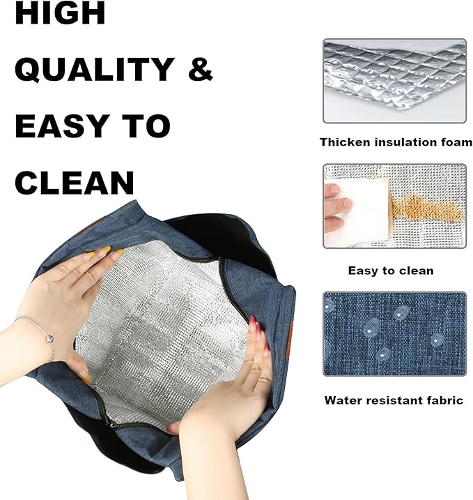 - ❤KEEP FRESH & WARM: This insulated lunch bag is made of water-resistant leakproof oxford cloth, easy clean food safe aluminum foil inner lining, and padded with thicken EPE foam will keep your food cold or thermal for 4-6 hours. Tips: Putting ice packs into the bag could keep cold for longer time.