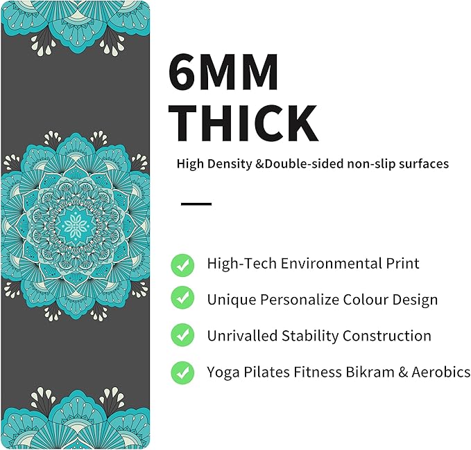 nuveti Yoga Mat Print Extra Thick TPE Non Slip Fitness Exercise Mat with Carrying Bag,72"x24" Extra Thick 6MM Exercise & Workout Mat for Yoga, Pilates Fitness and Floor Exercises