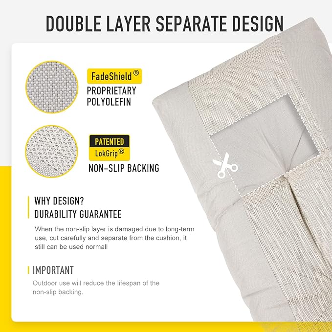 - 【 Double-layers Bottom Separate Design】In addition to the LokGrip non slip backing layer, also have peoprietary polyolefin protective layer inside, which effectively prevents damage to the foam filling due to friction. Even if the spider web shape bottom non slip layer is damaged due to long-term use, cut carefully and separate from it, the chair cushion also can still be used normal, double protective, make the chair cushion more durable.