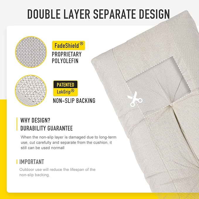 - 【 Double-layers Bottom Separate Design】In addition to the LokGrip non slip backing layer, also have peoprietary polyolefin protective layer inside, which effectively prevents damage to the foam filling due to friction. Even if the spider web shape bottom non slip layer is damaged due to long-term use, cut carefully and separate from it, the chair cushion also can still be used normal, double protective, make the chair cushion more durable.